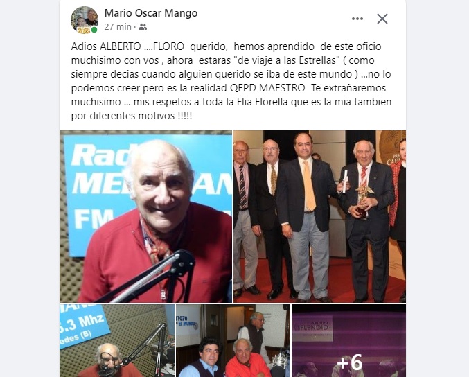 La ciudad amaneció con la triste noticia de la confirmación del fallecimiento del histórico periodista local a través de la publicación a través de las redes sociales de su compañero de trabajo y locutor, Mario Mango.