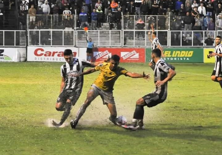 Los primeros 45 minutos del partido mostró lo mejor de Flandria. El campo de juego estaba muy complicado por la lluvia caída en las horas previas. El canario intentó imponer su juego que caracteriza al equipo del Lobo Montenegro.