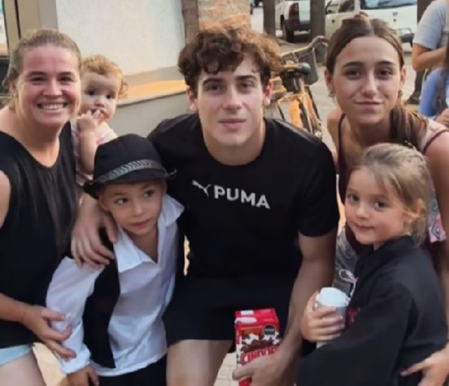 El furor estalló cuando el piloto apareció en un supermercado local junto a su padre. Las imágenes no tardaron en viralizarse: se lo pudo ver conversando con total sencillez en el sector de la carnicería y, a la salida, posando para las fotos con los empleados del comercio. Un detalle no pasó desapercibido para los seguidores en redes sociales: en una de las fotos, Franco sostenía una bolsa de compras y un clásico cartón de leche chocolatada, un gesto de cotidianidad que despertó miles de comentarios afectuosos.