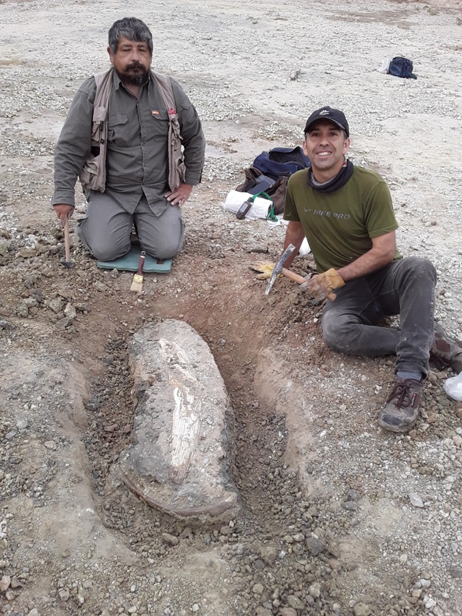 Notiomastodon: Un pariente del elefante de hasta 5 toneladas. Se hallaron defensas (colmillos) de casi dos metros.