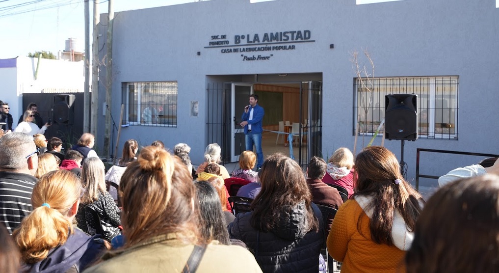 El intendente Juani Ustarroz encabezó la inauguración de las obras de construcción de la Casa de Educación Popular Pablo Freire y la jerarquización de la Sociedad de Fomento de barrio La Amistad. Se efectuó una gran intervención de infraestructura que permite poner en marcha un espacio multi propósito en materia educativa, cultural y social. Se financió vía gestiones ante la Provincia de Buenos Aires.
