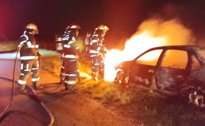 En la tarde de este domingo 26 de abril, alrededor de las 19 horas, se produjo un siniestro ígneo en el acceso a la localidad de General Rivas, partido de Suipacha, que terminó con la destrucción total de un automóvil.