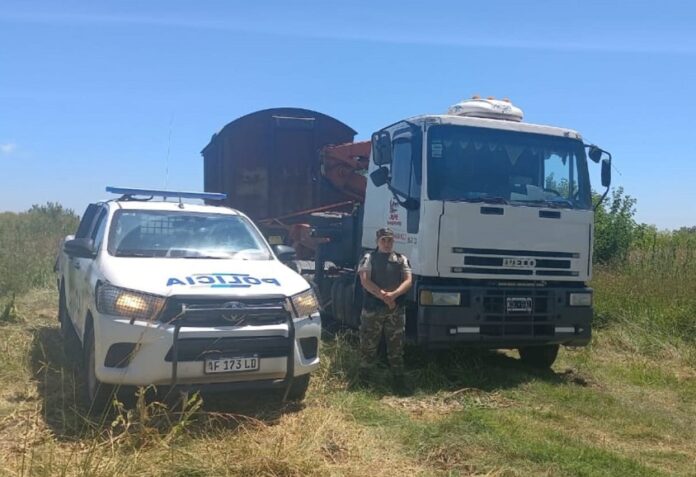 Según pudimos saber, personal del Comando de la Patrulla Rural de Suipacha se encontraban realizando una recorrida de rutina, y se encontraron con un camión Iveco que intentaban llevarse un antiguo vagón de tren.