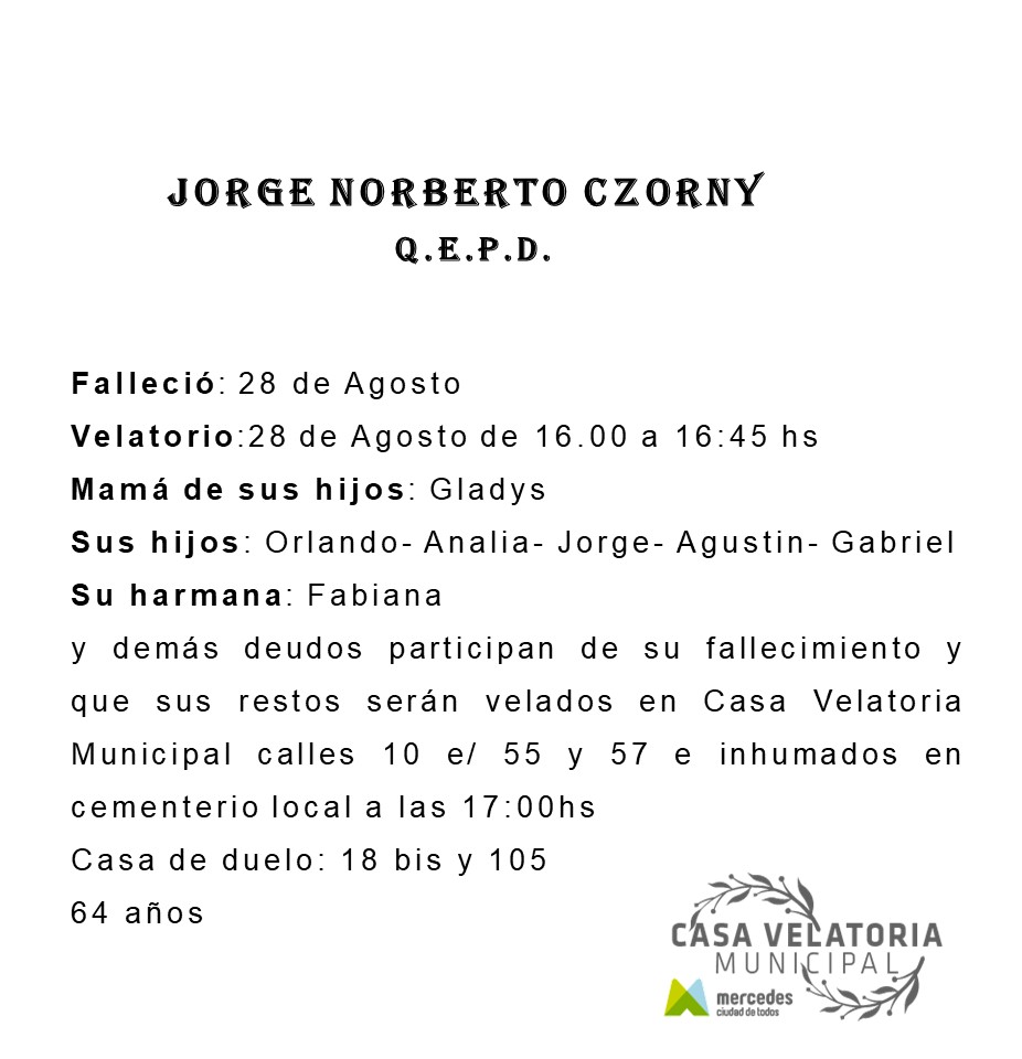 Sepelio: jueves 28 a las 17 horas, previo Responso en Casa Velatoria Municipal