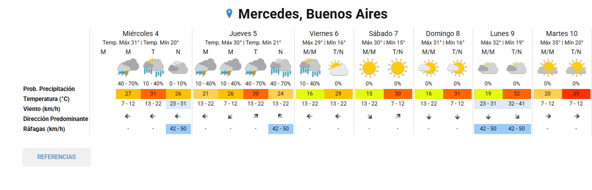 Para Mercedes y las localidades vecinas (Suipacha, Luján, Chivilcoy), se espera: