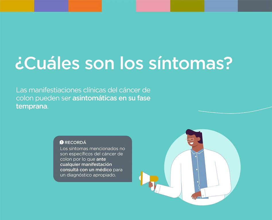 Las manifestaciones clínicas del cáncer de colon pueden ser asintomáticas en su fase temprana, sin embargo, los síntomas más comunes que produce son: