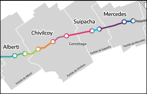 El servicio, que comenzará a funcionar el lunes 4 de agosto, contará con el troncal Mercedes–Alberti, con paradas en los partidos intermedios, y un servicio fraccionado Mercedes–Suipacha. Se recupera una línea de transporte fundamental.