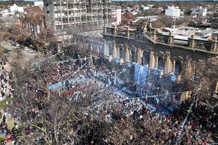En un acto encabezado por el intendente Juan I. Ustarroz se llevó adelante la promesa a la bandera contando con más de mil estudiantes de las escuelas públicas y privadas acompañados de sus familiares.