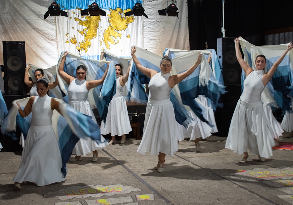 La conducción de Jorge Torres y Luis Antes guio una noche donde el folclore y la danza fueron protagonistas. La apertura musical estuvo a cargo de “El Liniense”, seguida por una impactante presentación conjunta de las agrupaciones “Pasión Gaucha” y “Nuestra Señora de las Mercedes”. Ambas estrenaron el set “Memoria”, una puesta en escena que integró audios originales de excombatientes y un emotivo homenaje a las Madres de Malvinas.