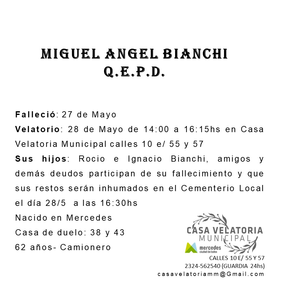 Nacido en Mercedes. casa de duelo: 38 y 43