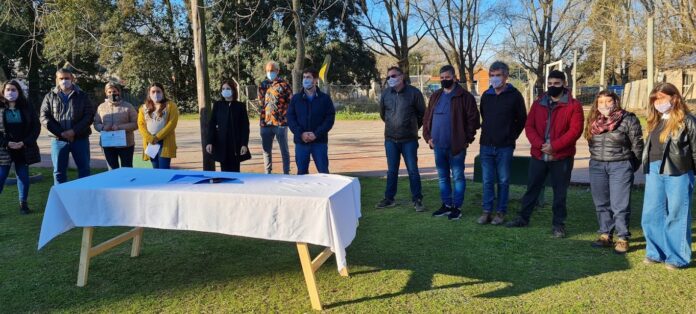 El intendente Ustarroz estuvo acompañado por la secretaria de Inclusión Social Laura Alonso, por la secretaria de Desarrollo Social del municipio Jorgelina Silva, el representante de FAUBA Pablo Rusc, el referente del Centro de Referencia Nicolás Zeballos, el director del CEPT N° 4 Fabián Rodríguez, la directora de la Escuela Agraria Paula Losinno, el presidente de FACEPT Javier Prada, el concejal Julián Inzaurgarat y vecinos y representantes de la sociedad de fomento de Gowland.