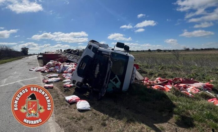 En la jornada de ayer miércoles 8, alrededor de las 13 horas, tres dotaciones del Cuerpo de Bomberos de Navarro acudieron ante el vuelco un un camión en ruta 41