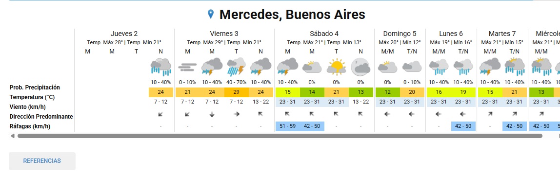 El Servicio Meteorológico Nacional (SMN) emitió un alerta para Mercedes y la región ante la llegada de un frente frío que cambiará drásticamente las condiciones climáticas a partir de este viernes. El pronóstico anticipa lluvias, ráfagas y un marcado alivio tras el calor.