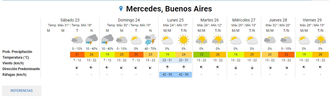 Mercedes, Suipacha, San Andrés de Giles y toda la región, nuevamente con un alerta amarillo para la noche del 24 de diciembre y probablemente en la madrugada del 25.
