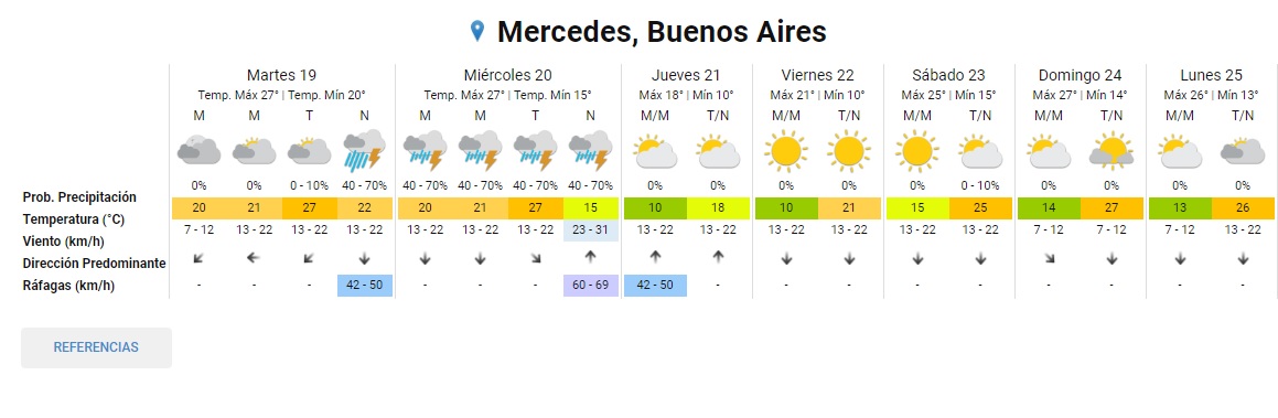 Para Mercedes y la región, se ha emitido un alerta amarillo para hoy martes, y de fuertes vientos para el miércoles. Los días húmedos, estarían llegando a su fin.