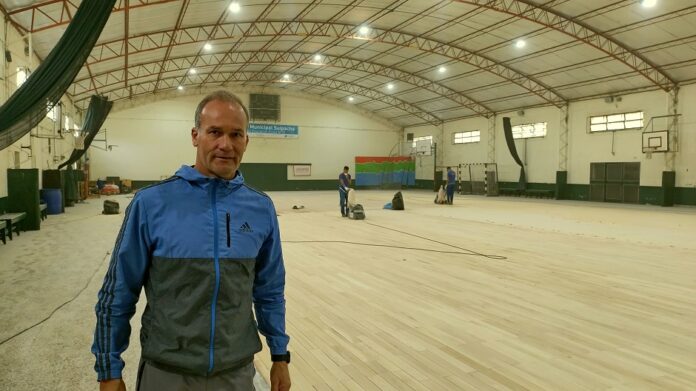 El profesor de gimnasia que encabeza el área de deportes municipal empezó contando algunos de los detalles sobre los importantes trabajos que se están realizando en el piso de Gimnasio Municipal: «Estamos en plena obra, realizando el reacondicionamiento a nuevo del piso flotante del gimnasio municipal, donde funciona el CEF 30. Muy contentos con el avance de la obra.