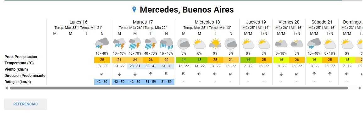 A diferencia de otros puntos de la provincia donde el mal tiempo ya se hizo sentir, en Mercedes, San Andrés de Giles, Suipacha y Luján rige actualmente un alerta amarillo. Esta categoría advierte sobre posibles fenómenos con capacidad de daño y riesgo de interrupción momentánea de actividades cotidianas.