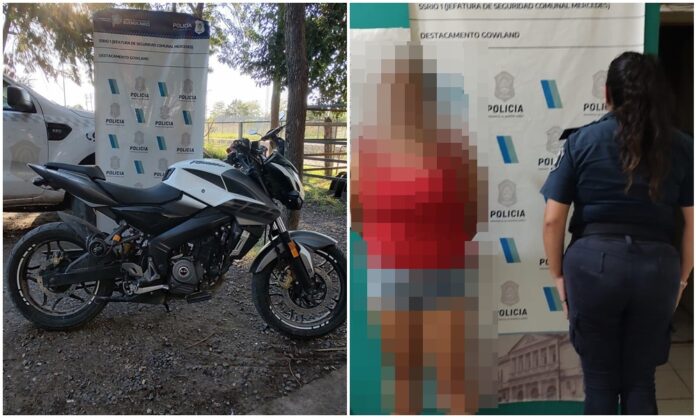La policía Comunal, delegación Gowland, logró la detención de una mujer de 28 años de edad que circulaba en una motocicleta Baraj Royser 150cc siendo la actuación de los efectivos en el cruce de calle 22 y ruta provincial N°41.