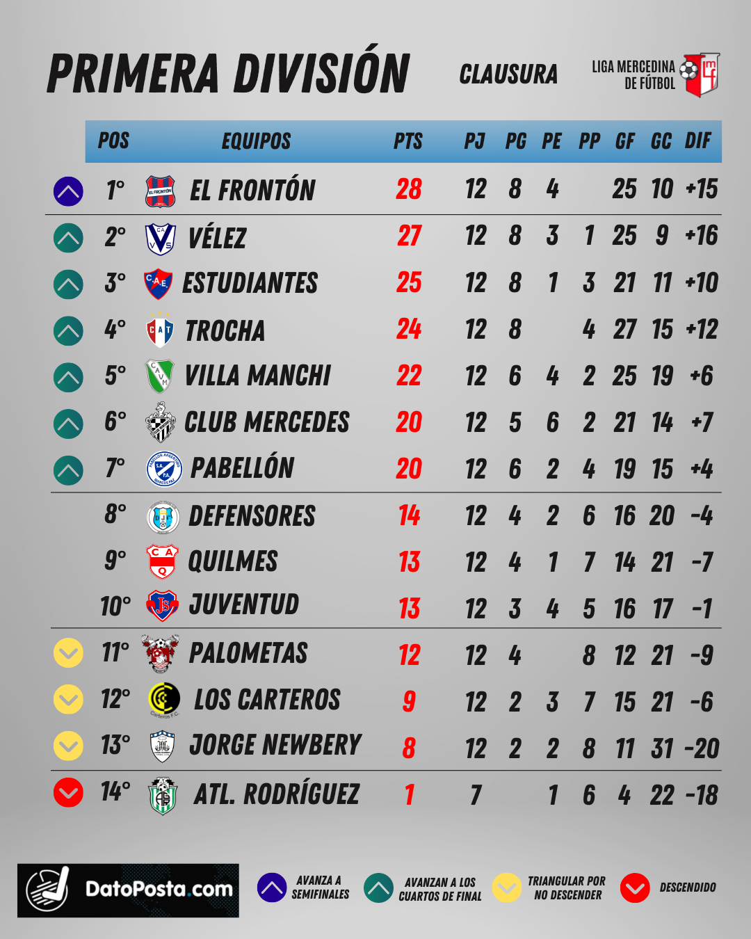 A una fecha del final de la etapa regular, la Primera División de la Liga Mercedina tiene definido los siete equipos que jugarán el reducido del Torneo Clausura. Sólo falta definir en qué posición finalizarán y eso se sabrá con la última fecha. En la zona baja, cuatro equipos luchan por no jugar el triangular para no descender.