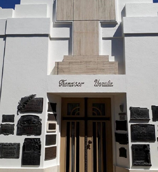 Los restos de Daniel Urrutia, quien fuera copiloto de Juan Manuel Fangio, que falleció en un accidente el 29 de octubre de 1948, descansan en una bóveda familiar del Cementerio de Mercedes que fue profanada.