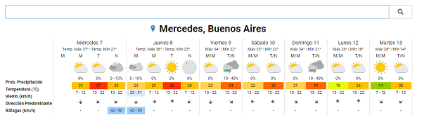 El Servicio Meteorológico Nacional renovó el alerta amarillo por temperaturas extremas, esperándose para Mercedes, San Andrés de Giles, Suipacha y localidades aledañas, una máxima de 37 grados con elevada sensación térmica.