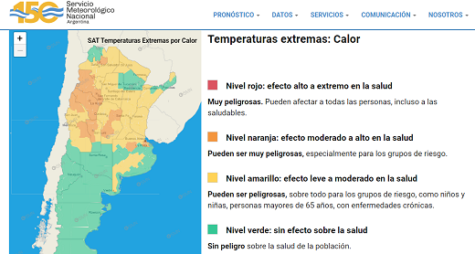 En tanto se emitió un alerta naranja por temperaturas que pueden ser peligrosas para la salud, especialmente para los grupos de riesgo, para la Ciudad de Buenos Aires, Chivilcoy, Alberti, Brandsen, Bragado, Cañuelas, San Vicente y otras ciudades de la zona.