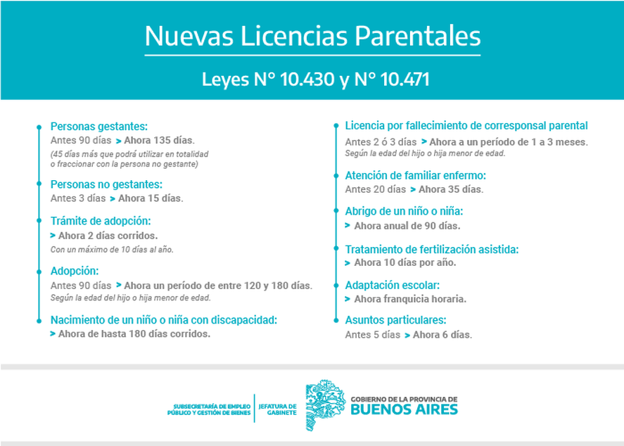 El Gobierno de la Provincia de Buenos Aires aprobó la ampliación de las licencias por maternidad y paternidad acordadas para trabajadores estatales.