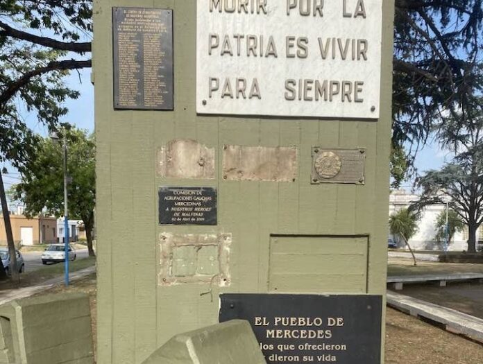 Tal como contamos en el día de ayer, los Veteranos de Guerra de Mercedes realizaron una denuncia por el robo de tres placas de bronce del monumento en avenida 29 y 50. Con seguridad, el hecho acaecido generará el repudio de diferentes sectores.