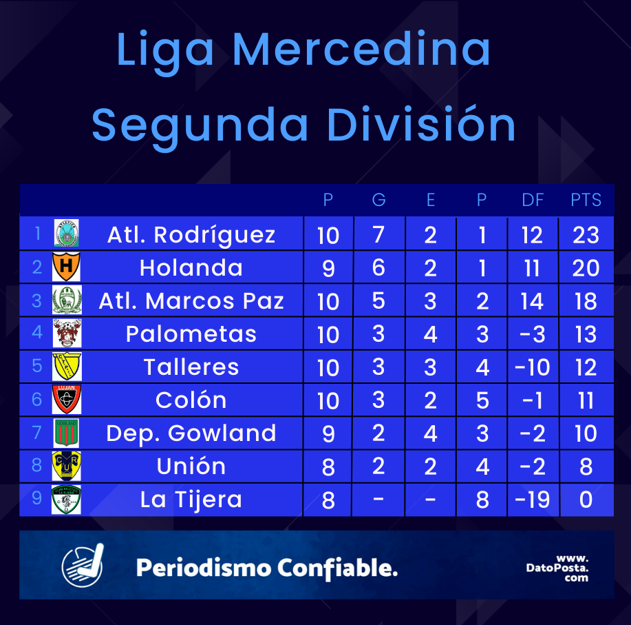 La Segunda División de la Liga Mercedina cumplió este lunes con la fecha 11 del campeonato de ascenso. Atlético General Rodríguez le ganó un partido clave a Holanda y vuelve a ser puntero. Por otro lado, Atlético Marcos Paz volvió a ganar y quiere seguir prendido en la pelea.