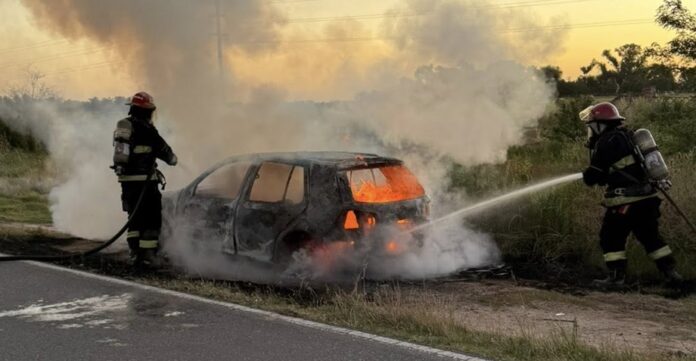 Un automóvil fue consumido por las llamas al atardecer de ayer viernes en la Ruta Provincial 41, en jurisdicción del partido de Navarro, entre esta localidad y Mercedes.