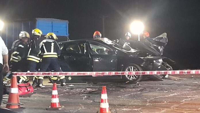 Un Ford Focus por razones que se buscan establecer colisionó en la parte trasera de un acoplado que era remolcado por un camión marca Volvo 310. Los dos vehículos transitaban el mismo sentido al momento del impacto.