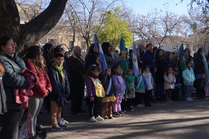 Con una nutrida asistencia, especialmente de escuelas, se conmemoró un nuevo aniversario de la Independencia Argentina. El encuentro fue en Plaza San Martín, al pie del monumento del prócer que le da nombre. El intendente Juan Ustarroz y Matías Montenegro, estudiante de historia, tomaron la palabra.