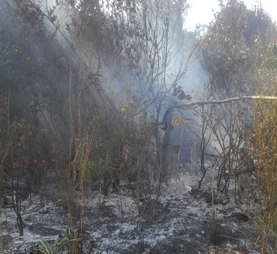 Los vecinos temen que el fuego se siga propagando. Es en una especie de bosquecito a la vera de la AU 5, de todas maneras, por lo que nos cuentan, ya estaría circunscripto.