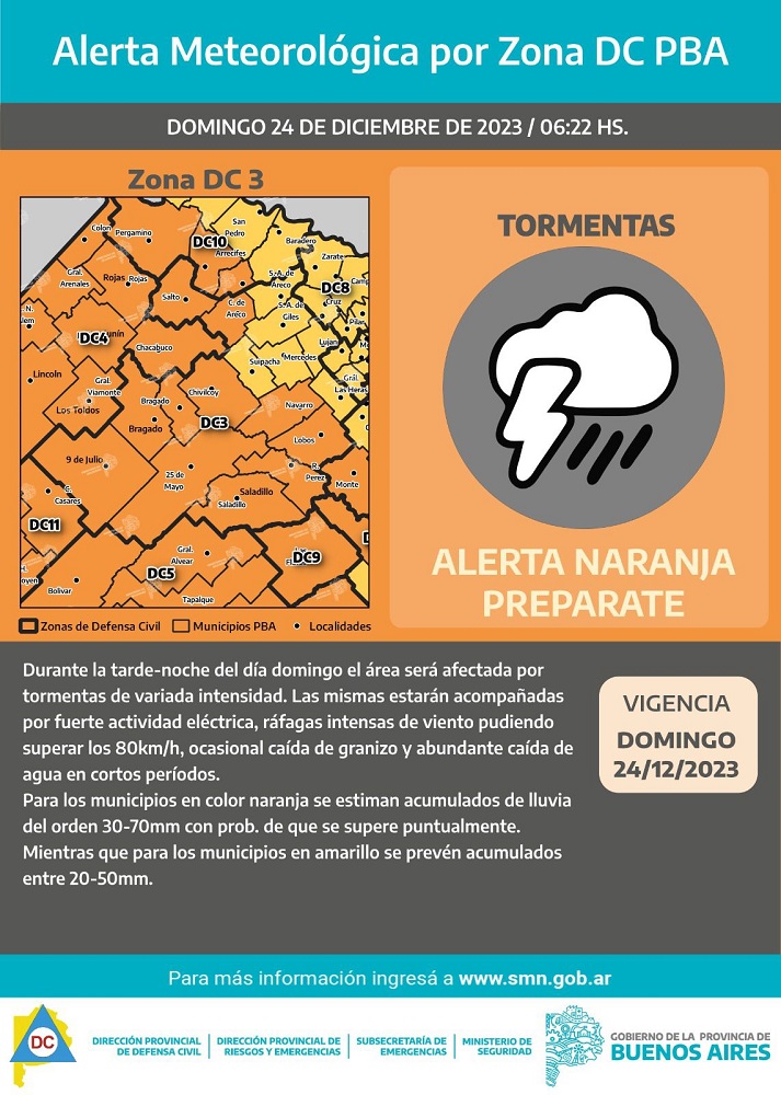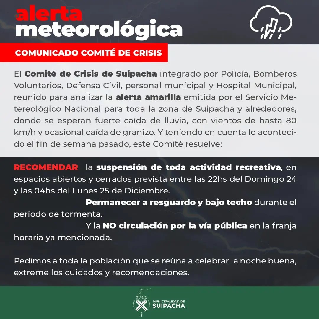 Para la Nochebuena se aguarda mal tiempo y rige un alerta amarilla por parte del SMN y los municipios de la región tomaron nota de lo sucedido el fin de semana pasado, y se emitieron recomendaciones.