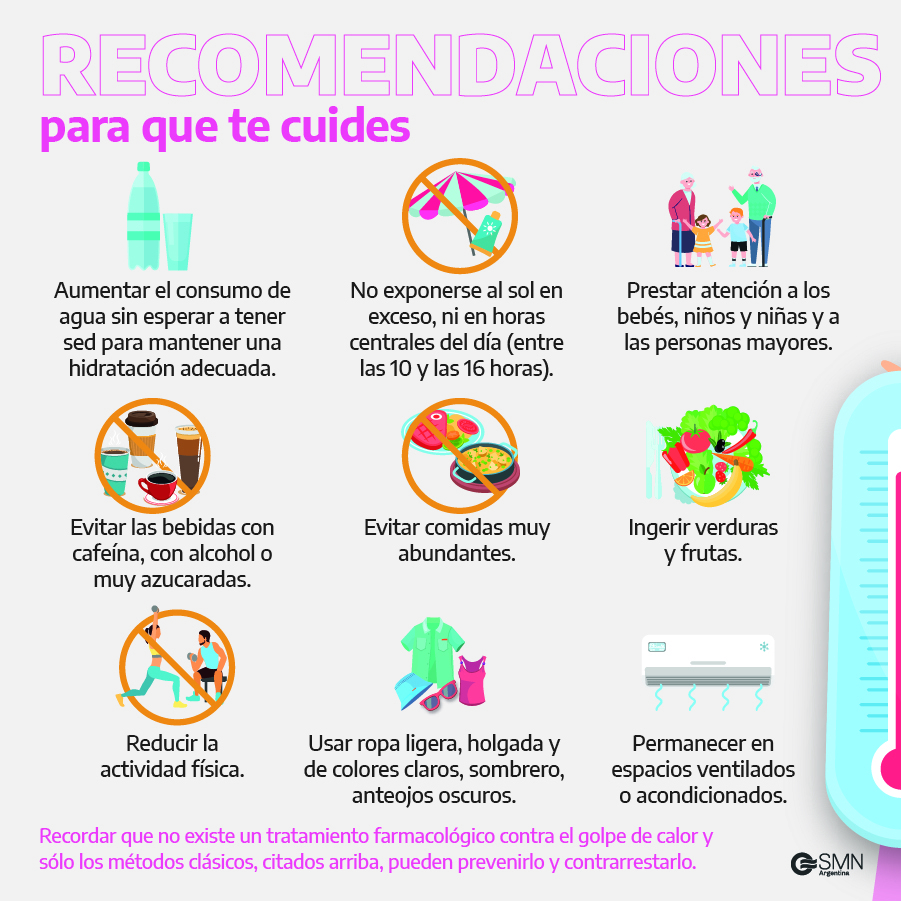 Es importante mantenerse informados sobre la evolución de las condiciones meteorológicas a través del Sistema de Alerta Temprana del Servicio Meteorológico Nacional, en https://www.smn.gob.ar/sistema_temp_extremas_calor