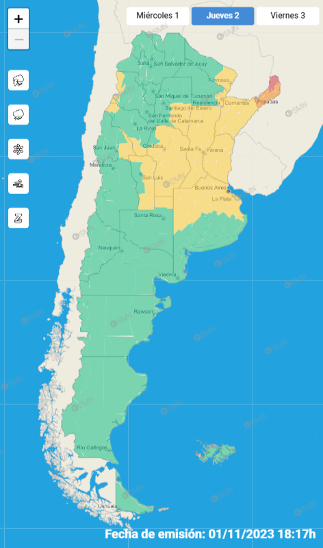 “Se prevén valores de precipitación acumulada entre 25 y 50 mm, los cuales podrían ser superados localmente”, aclaró el SMN en su web.