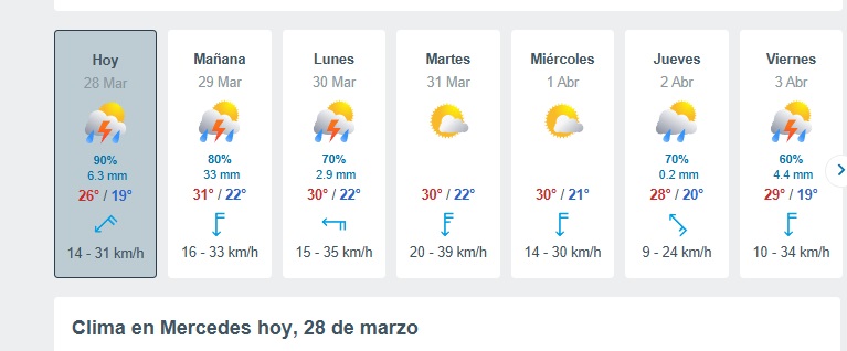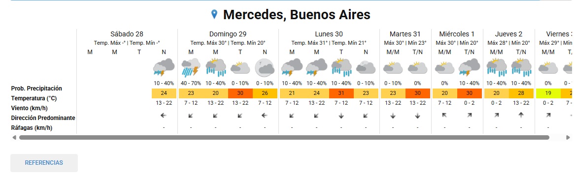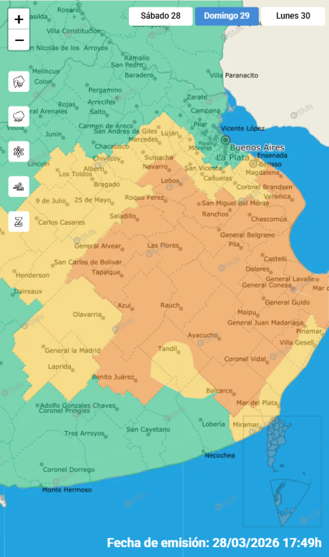 De acuerdo al reporte oficial replicado por el Municipio, se espera que los fenómenos más intensos se registren durante la madrugada y la mañana del domingo. Las tormentas podrían ser localmente severas, caracterizadas por una abundante caída de agua en períodos cortos, actividad eléctrica frecuente y ocasional caída de granizo. Además, se prevén ráfagas de viento que podrían alcanzar los 70 km/h.