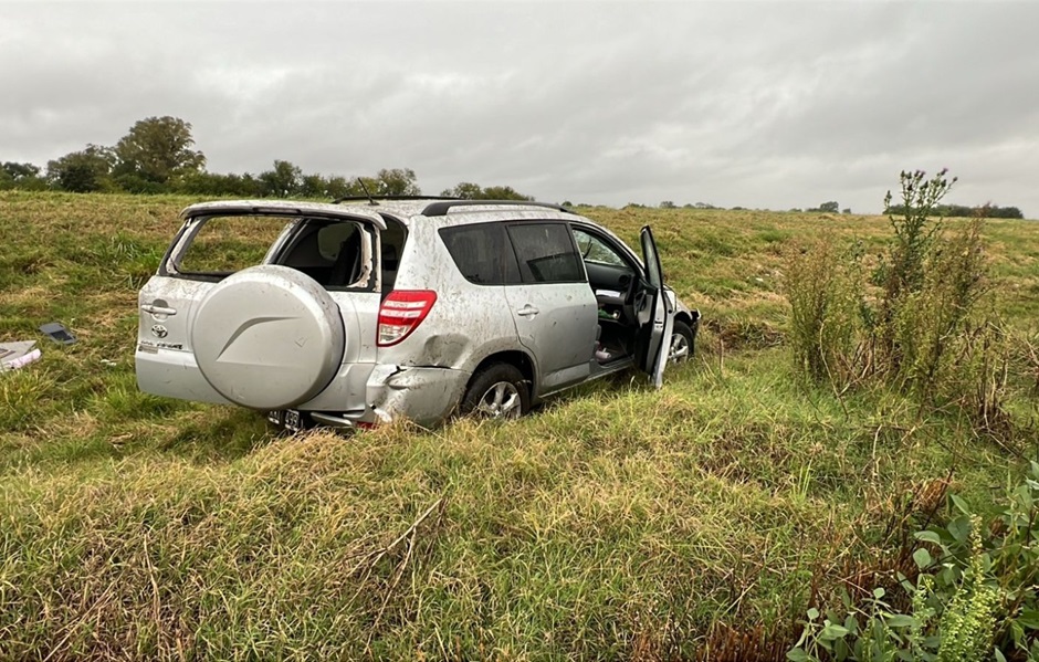 El vehículo, que circulaba en sentido Chivilcoy-Suipacha, cruzó hacia la mano contraria, atravesó la banquina y, tras dar un vuelco completo en la zona de préstamo, finalizó sobre sus cuatro ruedas orientado en sentido opuesto al que viajaba.