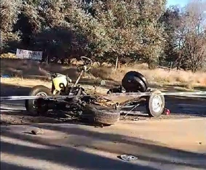 El siniestro se produjo minutos antes de las 15.30, mientras varios autos antiguos se dirigían al Club de Planeadores, ubicado sobre la misma ruta, y una camioneta que venía en dirección este a oeste se desvió de su camino e impactó de frente a uno de ellos. El hombre que manejaba la Ford Ranger fue identificado como Jorge Alfredo Lucero, de 45 años de edad. El resultado del test de alcoholemia a Lucero arrojó un resultado positivo de 0,74 g/l.