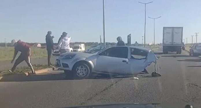 Según lo que se pudo reconstruir, el rodado perdió el control e impactó violentamente contra uno de los postes de alumbrado ubicados en el separador de la ruta.