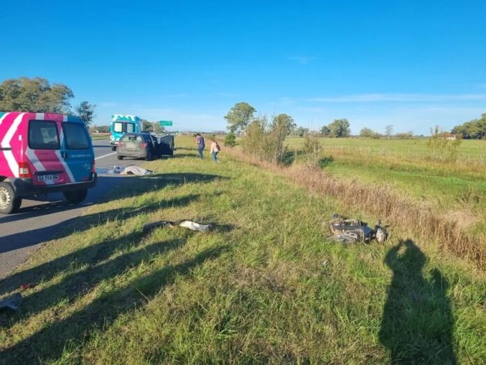 El accidente vial se produjo este fin de semana en la ruta mencionada a la altura del kilómetro 107 cuando por motivos que se investigan un auto chocó a una motociclista.