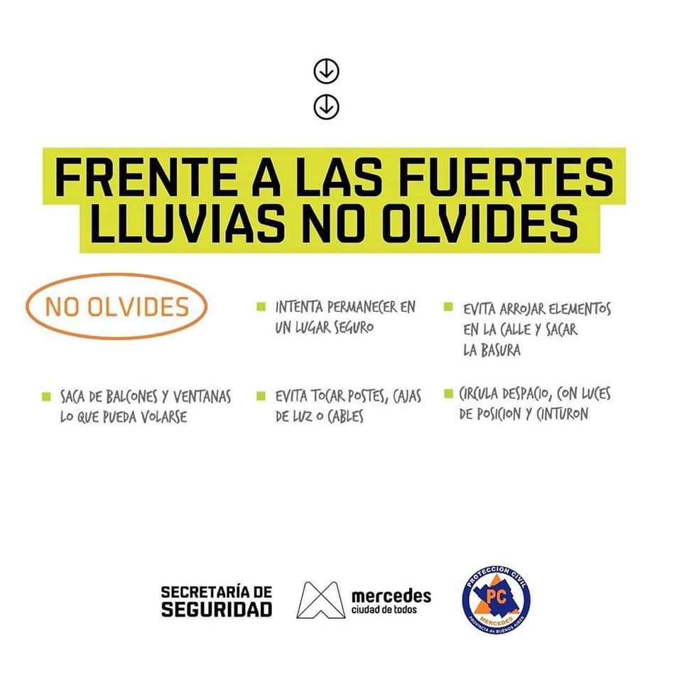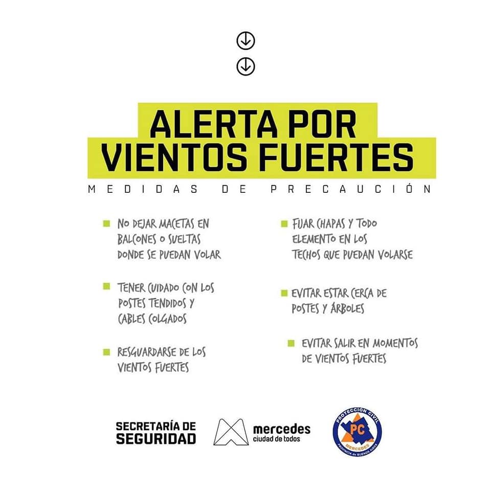 Hace instantes nada más, la Municipalidad de de Mercedes, a través del área de Protección Civil, lanzó un alerta para toda la ciudad por fuertes tormentas y vientos con una velocidad máxima de 56 kilómetros por hora.