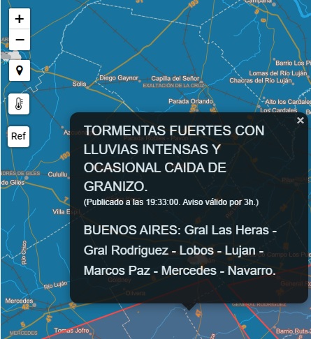 El Servicio Meteorológico Nacional emitió un nuevo alerta meteorológico por tormentas fuertes con lluvias intensas y ocasional caída de granizo para Mercedes, San Andrés de Giles, Suipacha, Luján y localidades aledañas.