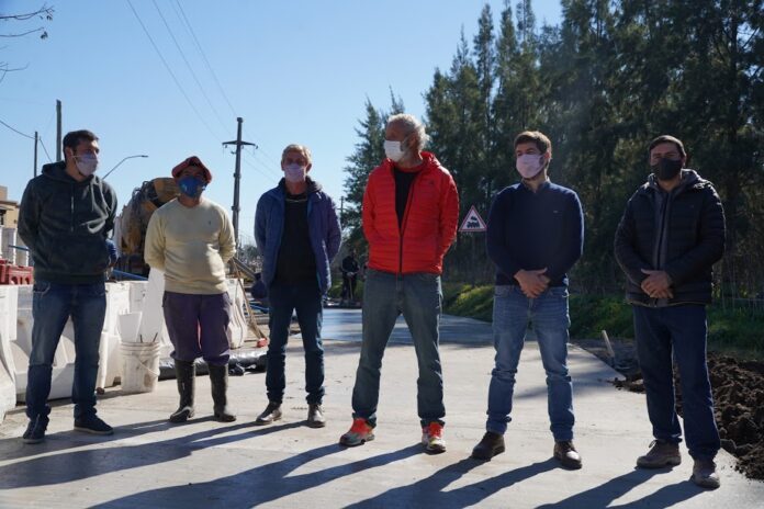 El intendente Juan Ustarroz estuvo visitando la obra, acompañado del subsecretario de Servicios Públicos Luis Ponce, el coordinador de las cuadrillas municipales de bacheo Carlos Romero, el concejal Julián Inzaurgarat, el vecino “Chuky” Lucero y el coordinador del C.I.C Fernando Massón.