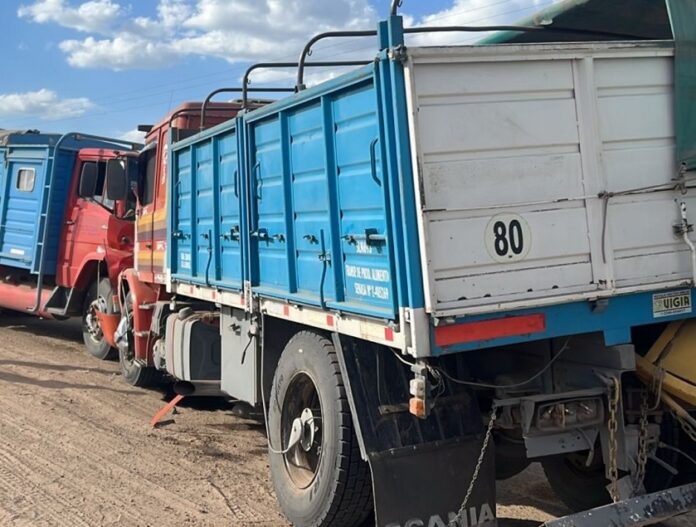 Un camión Mercedes Benz 1620, color rojo, dominio AAQ130, con acoplado cerealero cargado con trigo, circulaba en sentido Castilla-Suipacha, y conducido por Sergio Rosario Palmiere, de 70 años, domiciliado en Chacabuco.