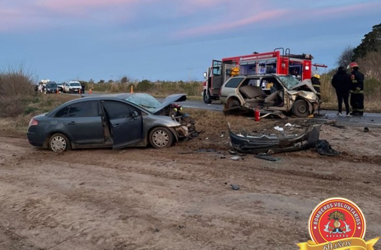 Los Bomberos Voluntarios de Navarro fueron alertados este miércoles aproximadamente a las 17.30 por un choque frontal ocurrido en ruta 40 (altura curva de Bastanchuri) entre un automóvil Citroën C4 y un Volkswagen Gol Country.