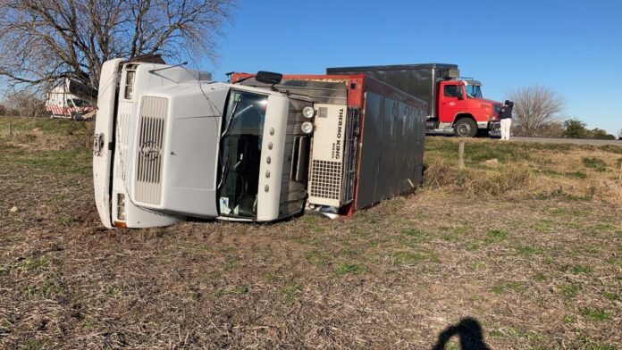 Minutos después de las 15 horas, de hoy martes 15 de junio, se produjo el despiste y vuelco de un camión sobre el trazado de la ruta 5 , en jurisdicción del partido de Suipacha.