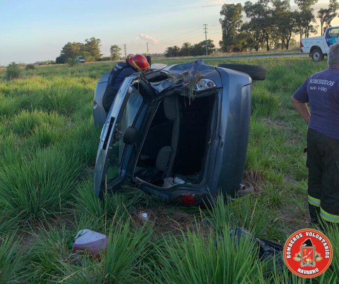 El vuelco se dio en el kilómetro 203 de la ruta provincial, y se suma a unos cuantos accidentes que se están registrando en la zona. Acudieron al lugar, 4 dotaciones del Cuerpo de Bomberos Voluntarios de Navarro.